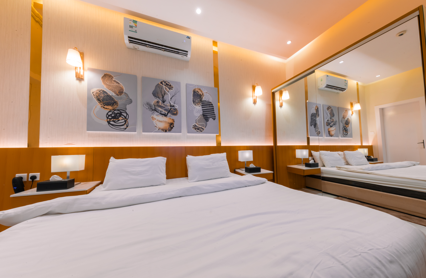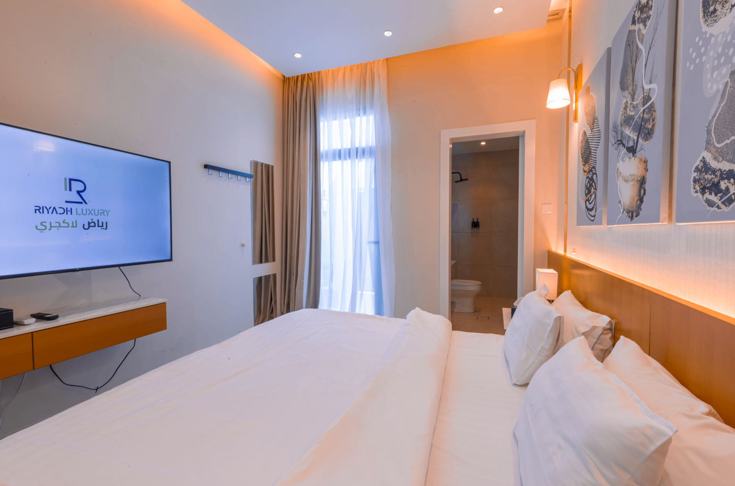 A modern studio apartment with a separate living area in Irqah, offering enhanced comfort, convenience, and a refined living experience perfect for both short stays and business travel.